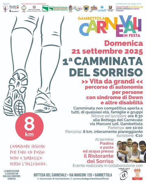 Il Comune di Gambettola, l'Associazione Gambettola Eventi, la CAD Cooperativa sociale Onlus, la Cooperativa Sociale Insieme per crescere Fondazione Fornino - Valmori e l'Associazione GRD genitori Ragazzi Down di Cesena hanno sottoscritto un protocollo di intesa per l'inclusione, formazione e tutela dei ragazzi con disabilità alle iniziative del carnevale della Romagna .....