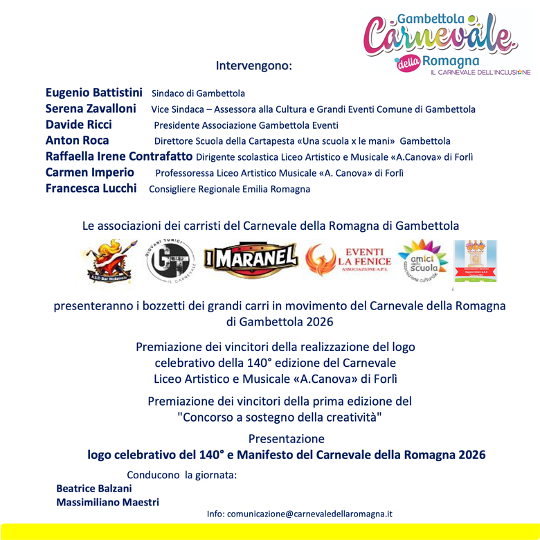 - Presentazione ufficiale del logo della 140° edizione del Carnevale della Romagna